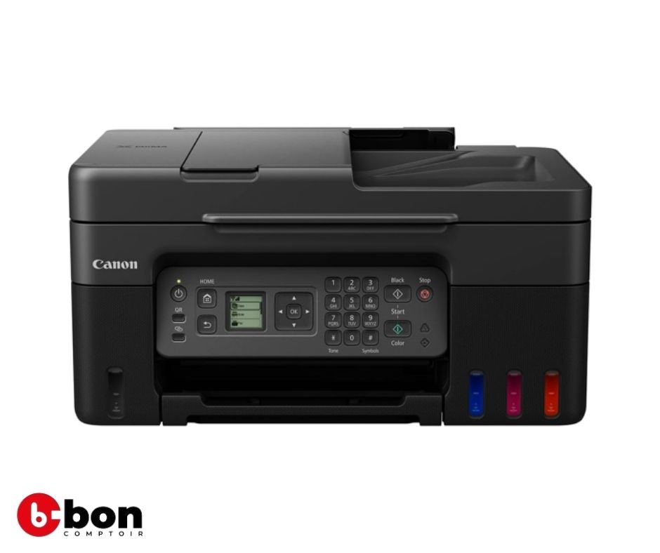 L'imprimante tout-en-un Canon PIXMA G4470 A4 couleur. Ce dispositif polyvalent et performant fusionne les fonctionnalités 4-en-1 (impression, numérisation, copie, fax) avec la technologie MegaTank à réservoirs intégrés pour offrir les tarifs d'impression les plus compétitifs du secteur.