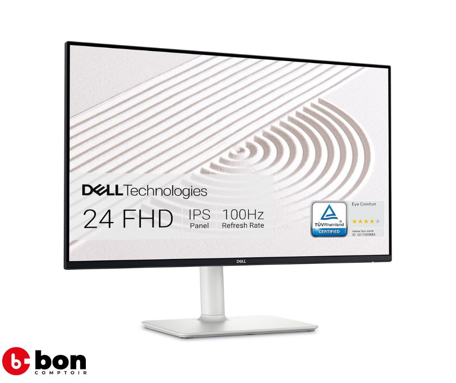 Le Dell S2425HS est un moniteur 24 pouces Full HD à dalle IPS offrant une image fluide à 100 Hz, une colorimétrie fidèle (99 % sRGB), et un confort visuel renforcé par Flicker‑Free et ComfortView Plus et il est disponible sur le site www.boncomptoir.com.