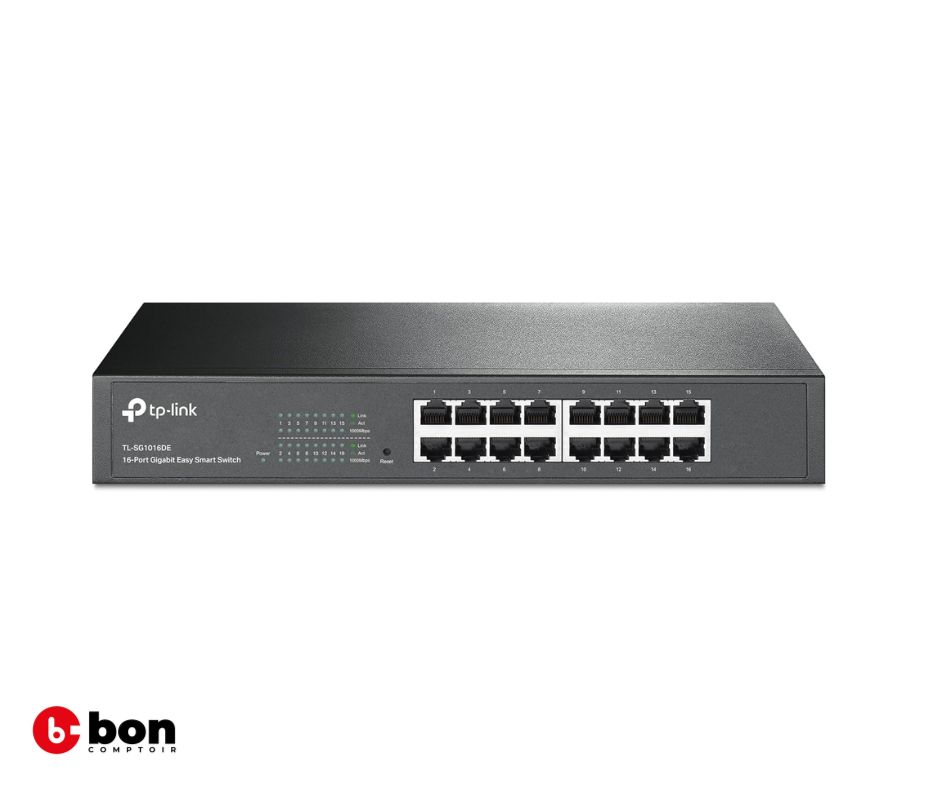 Le TP‑Link TL‑SG1016DE est un switch Gigabit Easy Smart à 16 ports, proposant des options de gestion réseau simplifiées (interface Web, utilitaire), mais sans complexité d’un switch géré complet. Idéal pour les PME ou laboratoires, il permet le plug-and-play tout en offrant des fonctions utiles comme la surveillance du trafic, le VLAN, les priorités QoS, et la prévention des boucles et disponible sur www.boncomptoir.com.