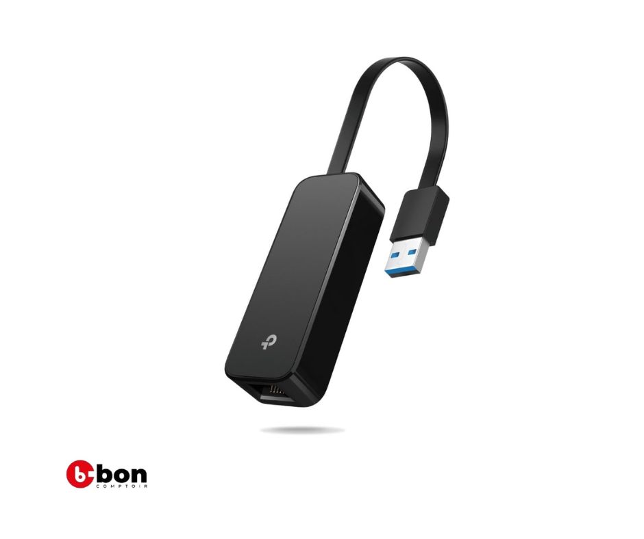 Le TP-Link USB 3.0 Gigabit Ethernet Network Adapter UE306, disponible sur www.boncomptoir.com, est conçu pour améliorer la connectivité réseau de votre appareil. Cet adaptateur se branche directement sur un port USB 3.0, offrant des vitesses de connexion allant jusqu'à 1000 Mbps, parfaites pour des tâches exigeantes comme le streaming de vidéos en haute définition, les jeux en ligne et le transfert de gros fichiers.